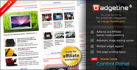 Gadgetine is premium blog magazine theme that will also work well for a serious news portal. It has 3 columns, 8 news sections and a LOT banner spaces on the first page.